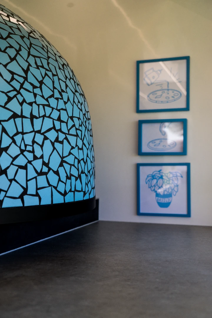 Ricotta, Grana Padano, basilic, jambon blanc, champignons de paris, oeuf, sauce tomate, mozzarella